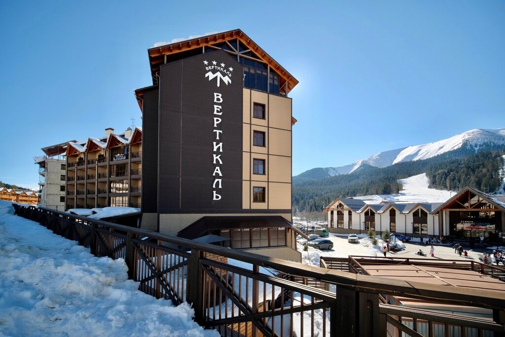 - Отель «Вертикаль» — горнолыжный комплекс в Архызе с итоговой оценкой 7.8/10, где главным достоинством является идеальная локация для катания.
