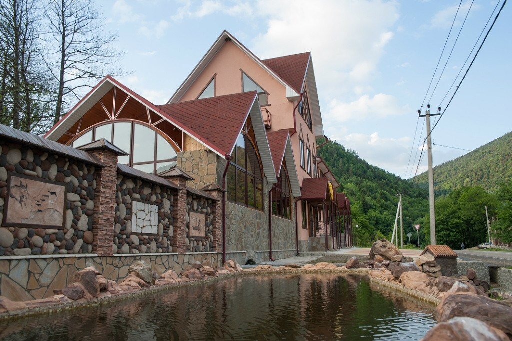 - Отель расположен в живописном посёлке Гузерипль в Адыгее, в окружении гор и вблизи реки Белая и Кавказского заповедника.
