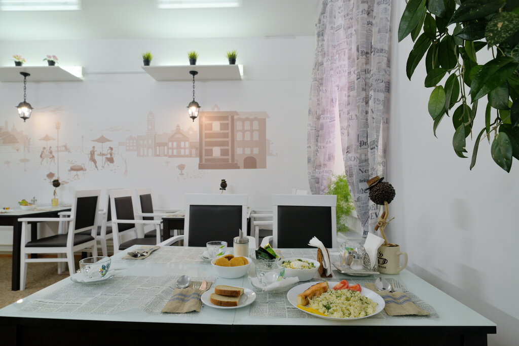 - Качество и разнообразие: Завтраки, как правило, домашние, вкусные и очень сытные. Гостям предлагается выбрать один из пяти вариантов (каша, омлеты в разных видах, яичница, блинчики с творогом или мясом). Дополнительно на столе всегда есть бутерброды с маслом, сыром и колбасой, а также чай, кофе, молоко, сахар, печенье и конфеты. Многие гости с удовольствием отмечают, что блинчики ещё тёплые и свежие.