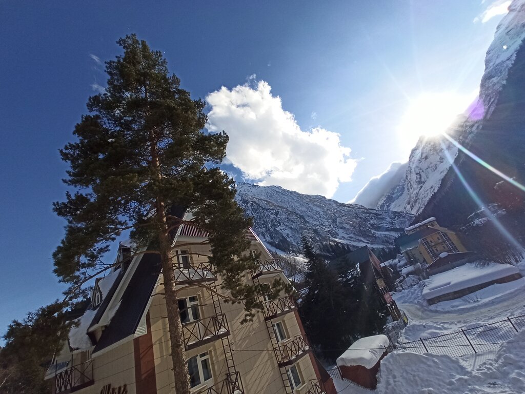 Расположение: Отель находится на окраине посёлка Домбай. Поскольку сам посёлок небольшой, удалённость от центра не является критичной. Многие гости пишут, что до основных достопримечательностей и инфраструктуры легко дойти пешком.