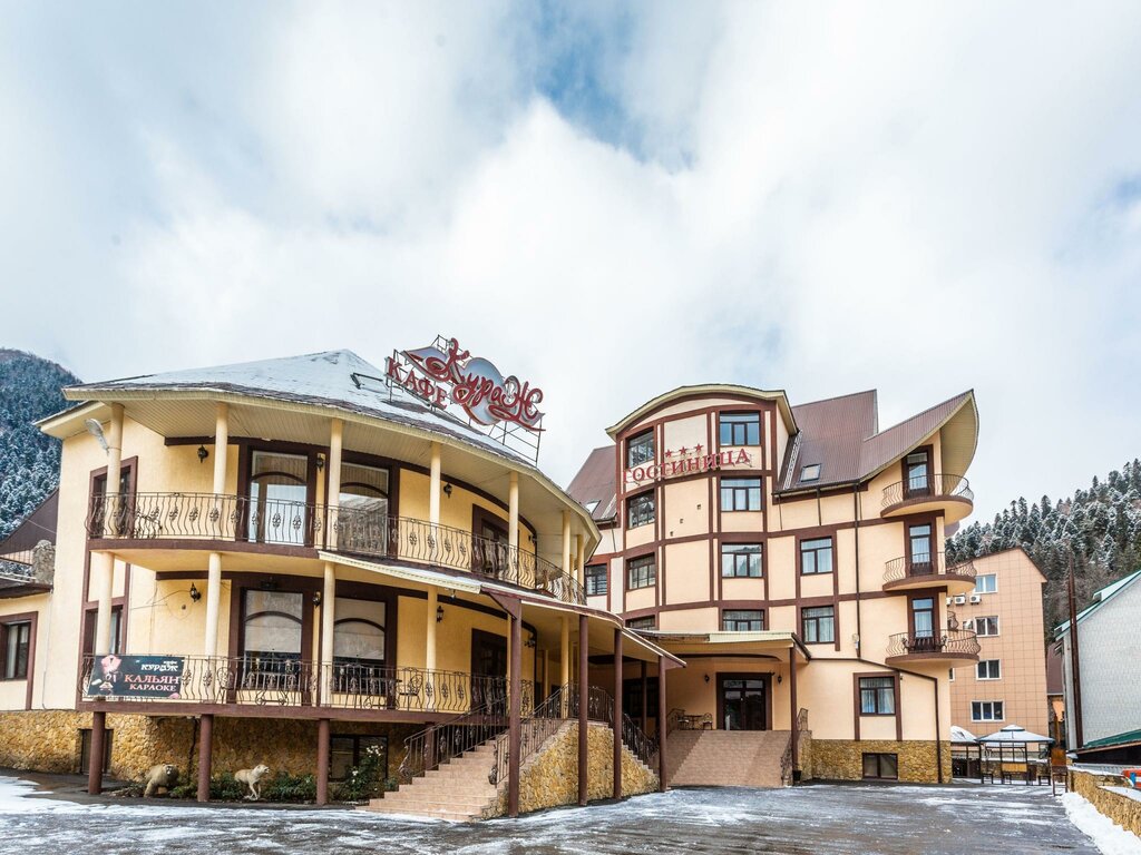 - Отель «Кураж» в Домбае — трёхзвёздочный отель с низкой итоговой оценкой 6.5/10 из-за системных проблем с обслуживанием и износом номеров.