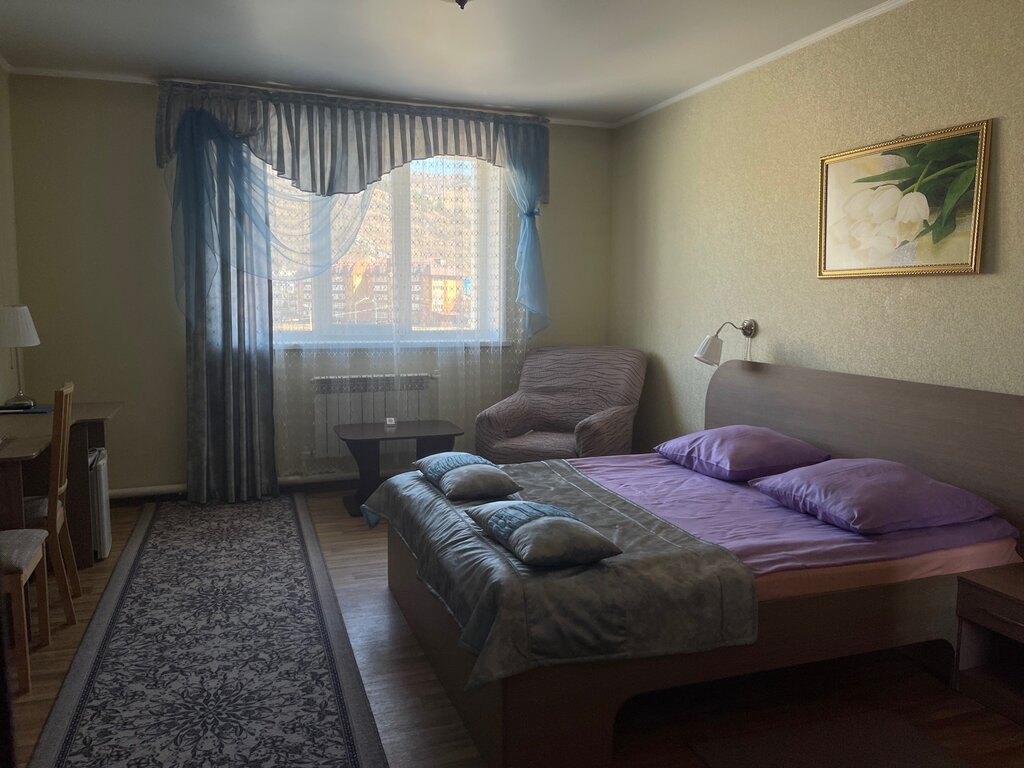 Расположение: Отель находится на главной городской магистрали, Коммунистическом проспекте, рядом со сквером Семьи и набережной реки Маймы. Это не самый центр, но достаточно близко к основным городским локациям.