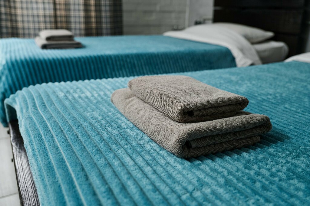 - Мебель: удобная двуспальная кровать (или две раздельные), качественные матрасы и подушки, белоснежное хлопковое постельное белье, шкаф, обеденный стол.