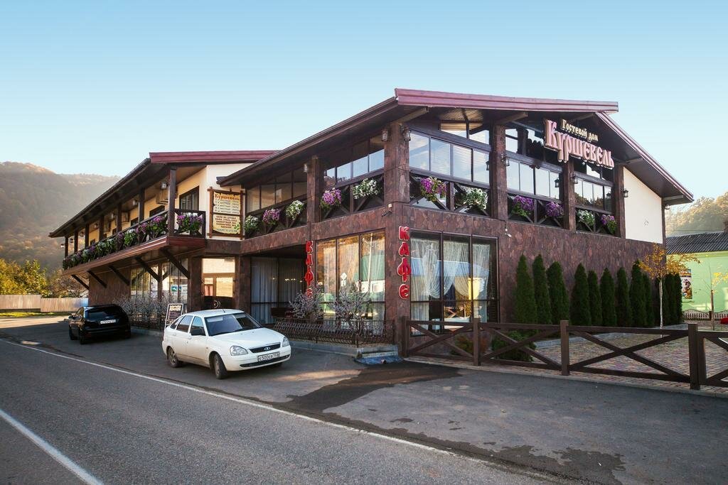- Гостевой дом «Куршевель» получил оценку 7.5/10 за сильную кухню и идеальную локацию для посещения Гуамского ущелья, которое находится в 5 минутах ходьбы.