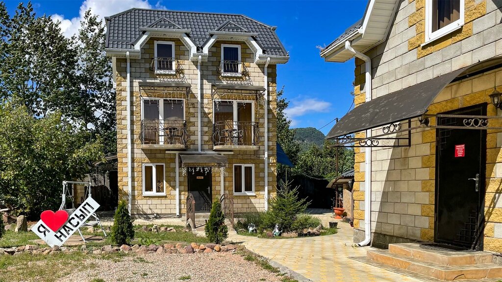 «Насып» — это уютный гостевой комплекс, расположенный в живописном горном селе Хамышки. Основу размещения составляют два объекта: большой двухэтажный коттедж, рассчитанный на компанию до 10-13 человек, и отдельный трехэтажный дом с четырьмя стандартными двухместными номерами. Ключевая особенность — акцент на активном отдыхе и единении с природой: на территории есть открытый бассейн, мангальные зоны и настоящая русская баня на дровах. Доброжелательное отношение хозяев и домашняя атмосфера делают его особенно привлекательным для тех, кто ищет неформальный, душевный отдых в горах.