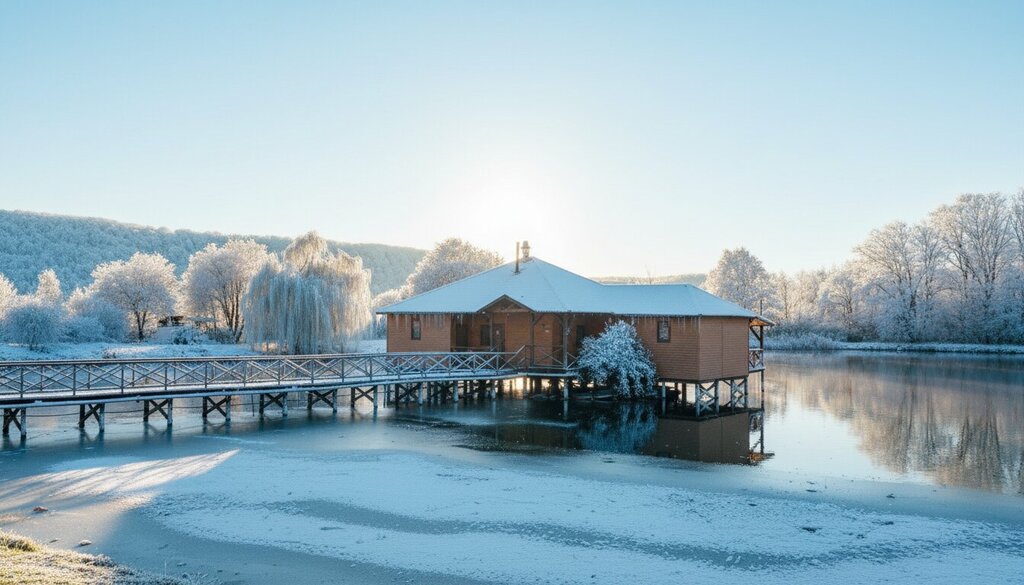 - Атмосфера и природа: Уникальное и очень живописное место с домиками на воде, озером, гусями, лесом и горами. Идеально для тех, кто хочет уединиться и отдохнуть от городской суеты.