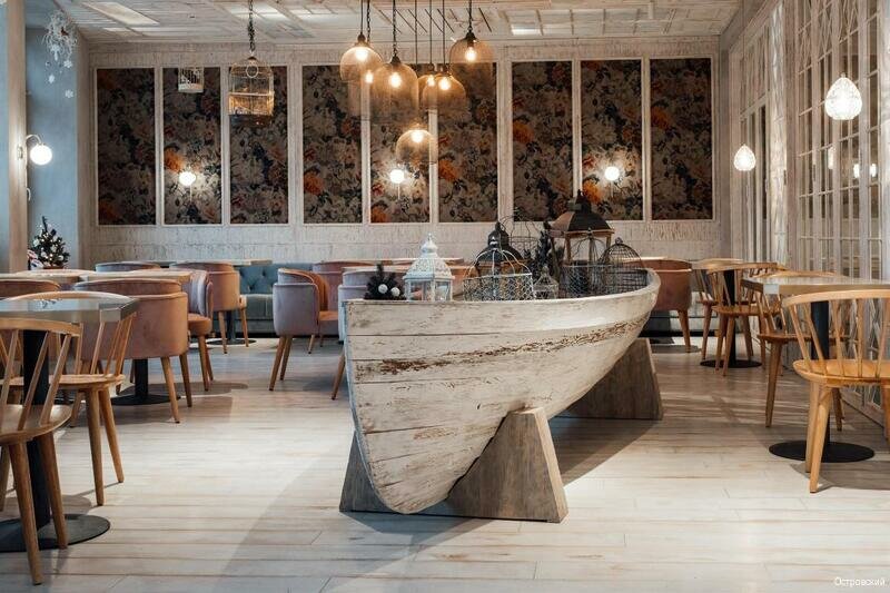 «Островский» — это современный и стильный отель, который удачно сочетает классическую элегантность с высокими технологиями. Архитектура и интерьеры выдержаны в духе русской усадьбы, но с акцентом на комфорт и функциональность. Особое внимание уделяется деталям: от изысканного деревянного лифта в стиле дворца до отделки номеров. На территории находится ресторан высокой кухни «Гроза», который сам по себе является одной из достопримечательностей Костромы. Отель располагает спа-центром, сауной и небольшим, но оснащенным тренажёрным залом.