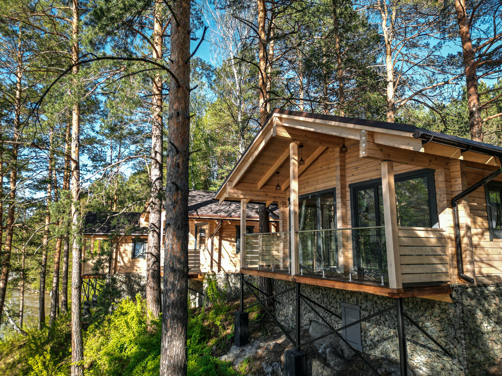 Описание: Ayat River — это небольшой круглогодичный эко-отель на правом берегу Катуни, состоящий из отдельных двухэтажных шале из клеёного бруса. Основная идея — единение с природой: панорамные окна, террасы с видом на реку, банный комплекс с чаном и спуски к воде. Отель привлекает тех, кто хочет отдохнуть от городской суеты в современном, но душевном формате.