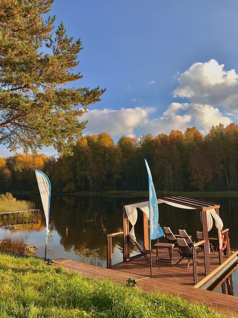- Сильные стороны: своя сауна и камин в каждом домике, ухоженная территория, возможность аренды лодок и уникальная плавучая баня.