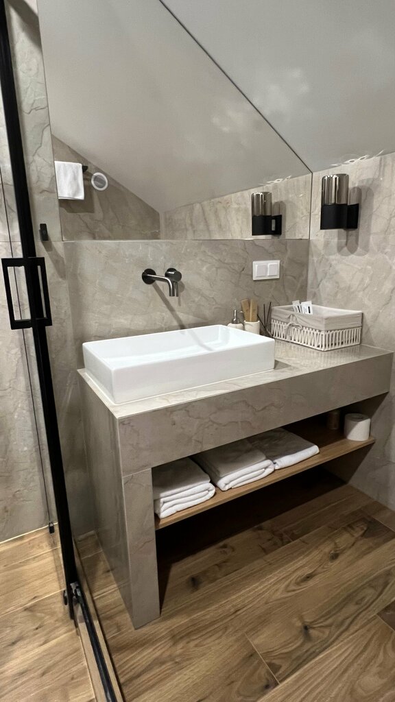 - Дизайн и оснащение: Номера новые, с современным и продуманным дизайном. Гости отмечают удобные кровати с качественным бельём, мансардные окна, хорошую технику (телевизор Smart TV), мини-бар, сейф. В некоторых номерах есть ванна прямо в комнате, что становится изюминкой для многих.