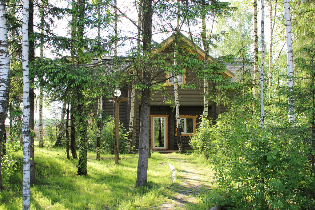 - Виды из окон — на березовый лес, соседние домики или пруд (зависит от расположения).