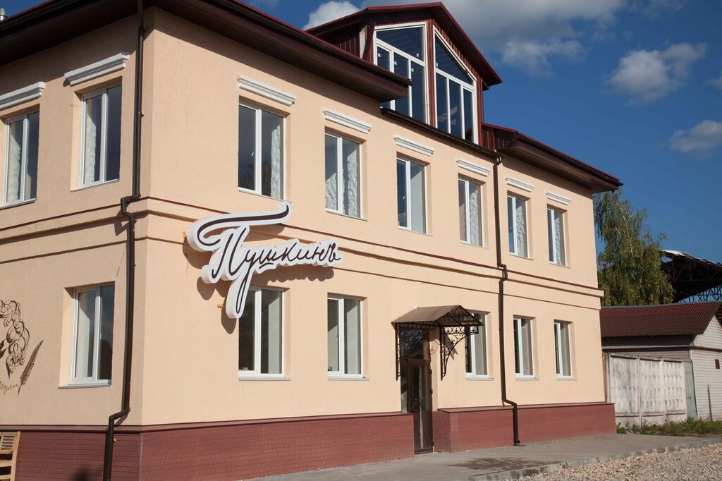 Описание: Отель «Пушкинъ» — это трёхзвёздочная гостиница на въезде в город, ориентированная в первую очередь на автопутешественников и гостей с питомцами. Главное преимущество — удобная транспортная доступность при движении по трассе. Отель позиционируется как средний по цене и качеству вариант с акцентом на домашний уют и базовый комфорт. Судя по отзывам, целевая аудитория — семьи с детьми, командированные специалисты, туристы на транзите и те, кто путешествует с собаками.