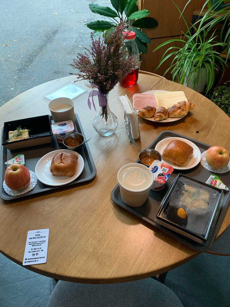 - Качество и разнообразие: Завтраки оцениваются по-разному. Одни гости называют их вкусными, сытными и достаточными, другие — скромными и скудными. В стандартный набор входит: каша, омлет или глазунья, сосиски, картофель, овощи на пару, витаминный салат, сыр и ветчина в нарезке, йогурт, мюсли, молоко, масло, варенье, хлеб и мини-круассаны, яблоки, чай, зерновой кофе. Завтрак достаточно, чтобы начать день, но не предполагает обилия деликатесов.
