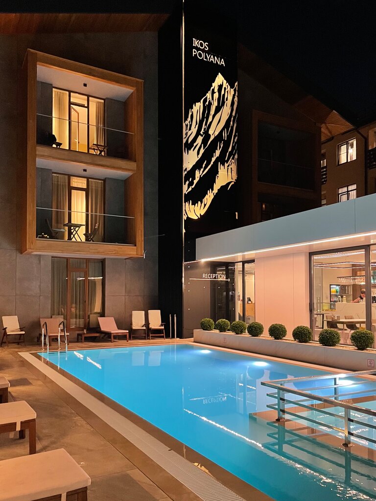Ikos Polyana Boutique-Hotel — свежий и стильный отель в сердце курортного села Эсто-Садок, открытый в 2021 году. Основные козыри — идеальная чистота, современный дизайн, тихое расположение в шаговой доступности от подъёмников и инфраструктуры, а также бассейн с подогревом, который особенно ценят зимой и в межсезонье. Гости в восторге от состояния номеров, качества уборки и в целом доброжелательного персонала. При этом почти у всех категорий гостей вызывает вопросы организация завтраков: тесноватый зал, периодические очереди и ощутимо разнящиеся мнения о разнообразии и качестве блюд. Набор незначительных, но досадных минусов (петух по соседству, иногда нестабильный Wi‑Fi и телевизор, временами «уставший» персонал) не перечёркивает общую позитивную картину, но оставляет простор для улучшений. Отель однозначно стоит рекомендовать любителям небольших, стильных и чистых бутик-отелей.