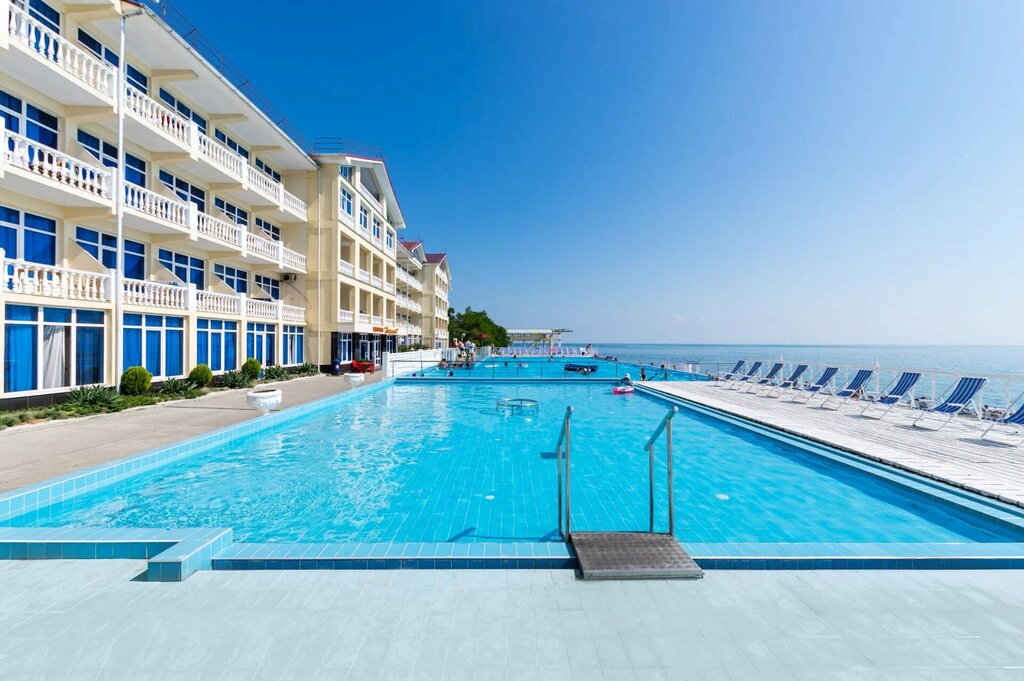 - 1Расположение: Гостиница находится на первой береговой линии с собственным пляжем.