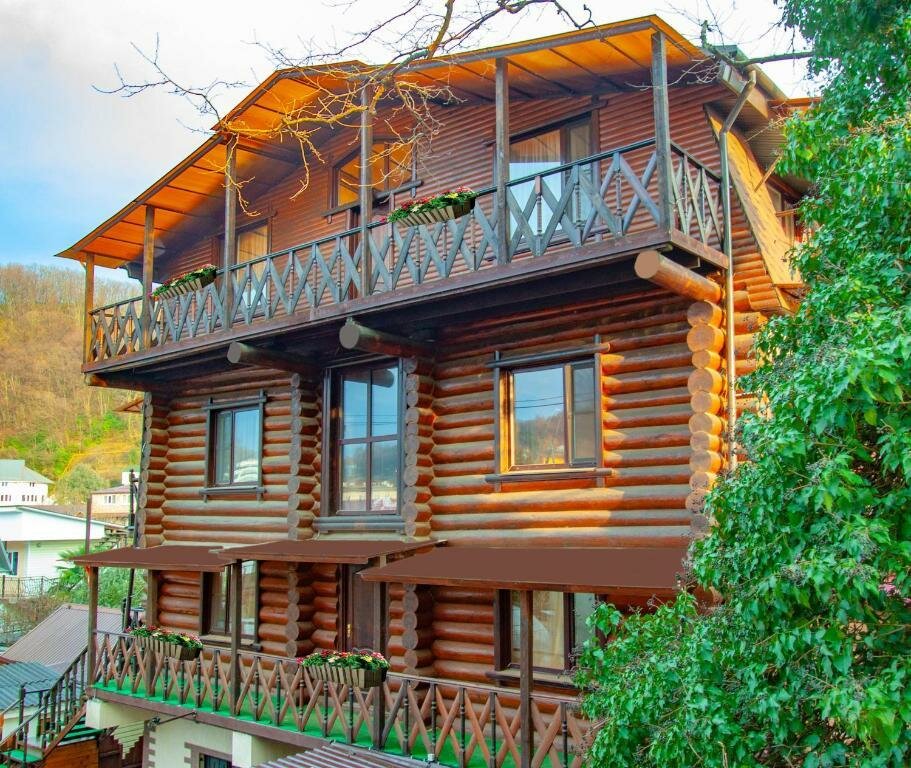 Описание: Гостевой дом «ШарЛООтка» — это четырёхэтажный дом из натурального деревянного сруба, стилизованный под русский теремок. Внутри он отличается уютной, почти сказочной атмосферой благодаря запаху дерева и продуманному интерьеру с книгами, настольными играми и деревянными элементами. Общее количество номеров — 12. На территории есть общая кухня-столовая, беседка с качелями и настольными играми, зона для барбекю с мангалом и казанком, детская площадка с горкой и надувным бассейном, а также бесплатная стиральная машина для гостей.