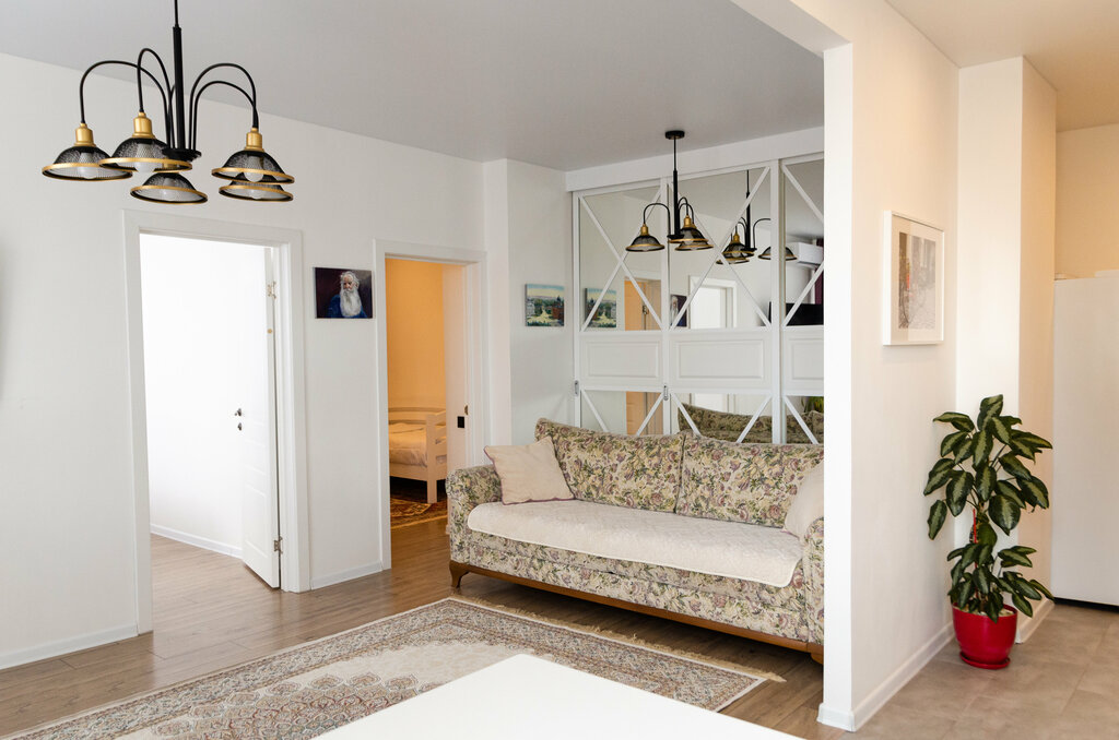 - Основное спальное место: раскладной диван. Гости отмечают, что он удобный, не «продавленный» и не скрипит.